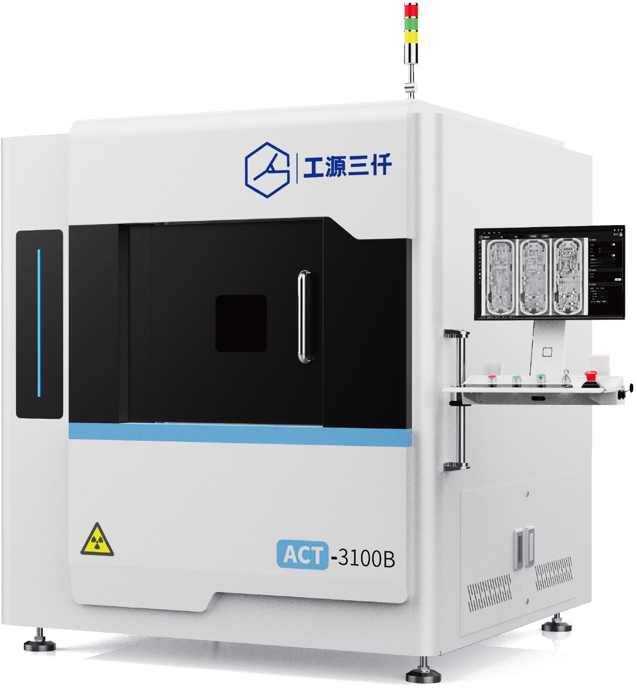 产品介绍:ACT-3100C是工源三仟自主开发的针对SMT、THT焊接、IGBT模块封装等场景,进行快速CT 扫描重建分析的在线式平面CT设备。工源三仟基于自研的高速CT成像算法、和精密的大理石平台,可大幅降低扫描环节需要的DR投影数量,提高CT成像速度。此外,工源三仟为客户定制化开发基于深度学习的识别算法,针对气泡、爬锡高度、异物等缺陷可达超过99%的识别准确率。